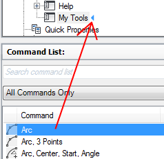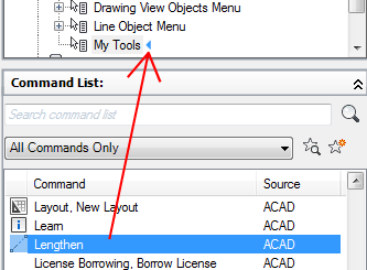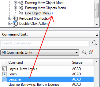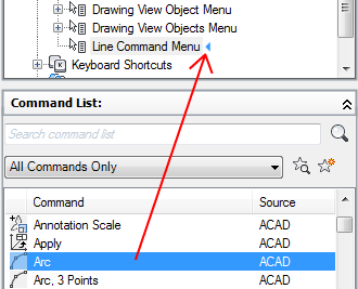 - In the Command List pane, drag the command that you want to add to the shortcut menu in the Customizations In <file name> pane.