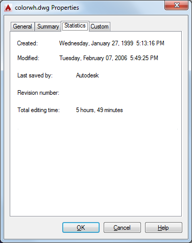 Displays data such as the dates the drawing was created and last modified.