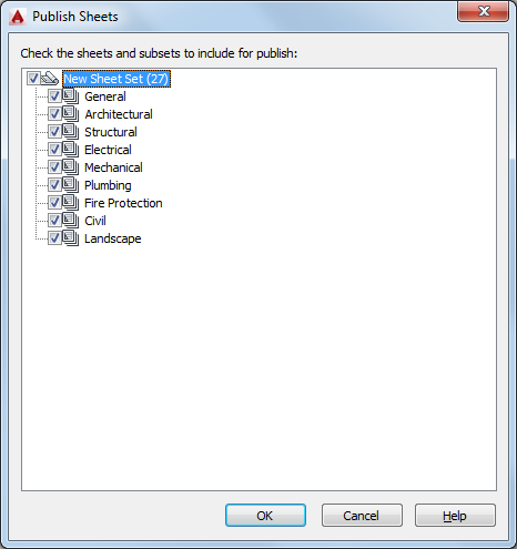 When a sheet is selected, it is included for publishing.