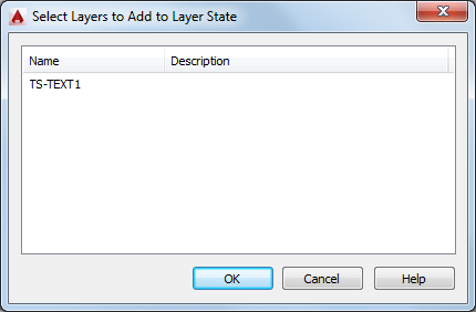 Displays the name and description of layers that have not been added to the layer state. Select the layers you want to add and click OK.