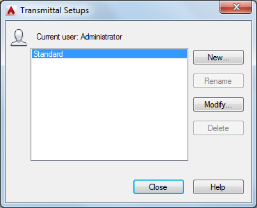 Displays the Modify Transmittal Setup dialog box, in which you can specify options for the transmittal package.