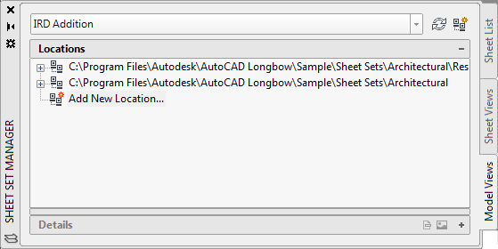You can add and remove folder locations to control which drawing files are available for the current sheet set.