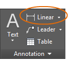 You can create horizontal and vertical dimensions with the DIMLINEAR command. Notice that the button is a drop-down list that includes the most popular dimension commands.