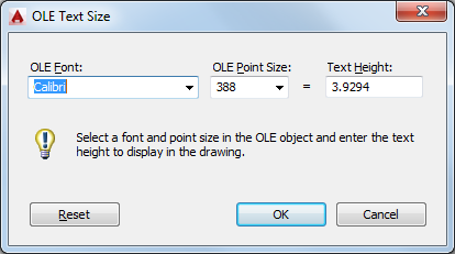 Maps the point size of one of the fonts in an OLE object to a text height in the drawing.