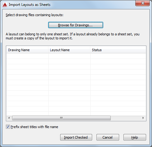 If a layout already belongs to a sheet set, you must create a copy of the drawing containing the layout to import it.
