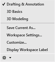 Workspaces are sets of menus, toolbars, palettes, and ribbon control panels that are grouped and organized so that you can work in a custom, task-oriented drawing environment.