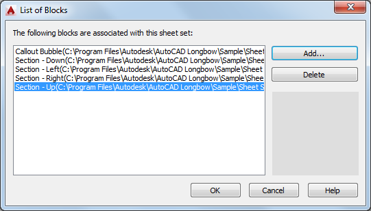 Lists, adds, or deletes callout blocks for use in the current sheet set.