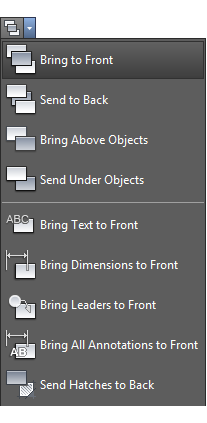 You can access several draw order options from the Modify panel on the ribbon. Click to expand the Modify panel, and then click the down-arrow as shown below.