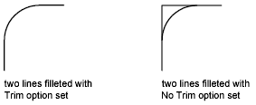 To fillet lines with polylines, each line or its extension must intersect one of the polyline line segments. If the Trim option is on, the filleted objects and the fillet arc join to form a single new polyline.