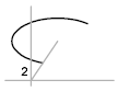 Defines the second axis using the distance from the midpoint of the first axis to the endpoint of the second axis (3).