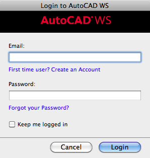 Logs you into AutoCAD WS and begins the upload process for the drawing.