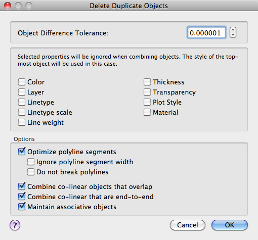 Use these settings to control how OVERKILL deals with lines, arcs, and polylines.