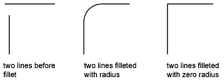 The fillet radius is the radius of the arc that connects filleted objects. Changing the fillet radius affects subsequent fillets. If you set the fillet radius to 0, filleted objects are trimmed or extended until they intersect, but no arc is created.
