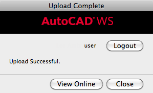 Displays the current status of the drawing being uploaded to AutoCAD WS.