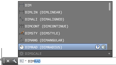If you start typing the name of the command or system variable on the command line, the autocomplete feature displays your choices. For example, if you enter dim, all commands and system variables that begin with those letters are listed as shown.