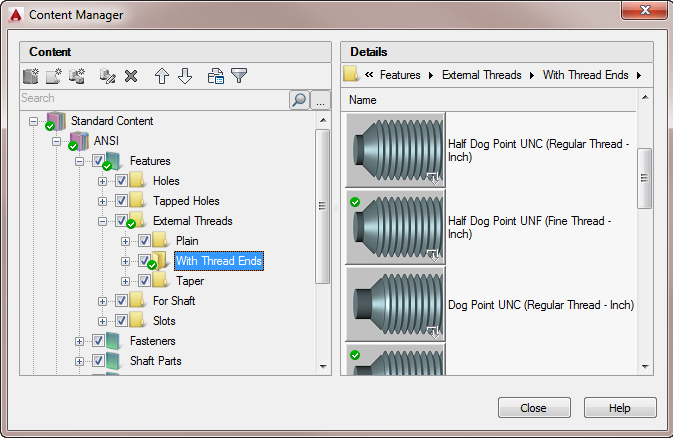 Sometimes, due to a content library update, the appearance of a standard part or feature that already exists in a content library may change. This typically happens if the content update fixes a defect. If you have already inserted the defective standard part or feature in a drawing file, you can update it by double-clicking it in the drawing area.