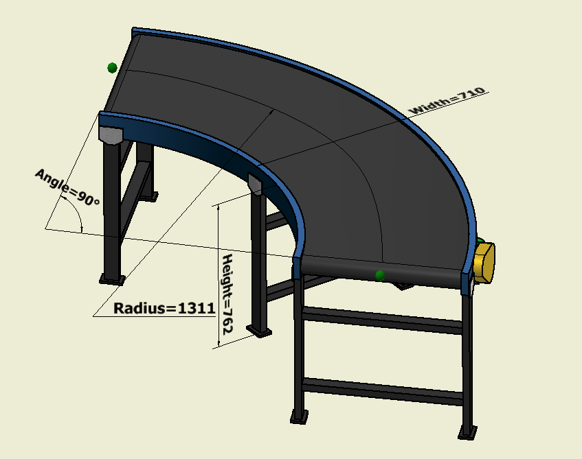 - Angle - The Segment Key Parameter named "Angle" stores the value of the Model Key Parameter called "Angle". This value, in degrees, is set to the desired turn angle for arc turn segments (like conveyors) and straight turn segments (such as 90° wall and fence segments). The Angle parameter must be mapped.