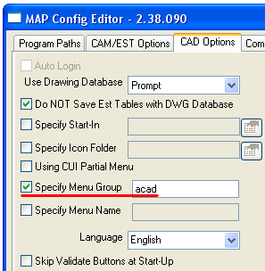 - Enter the Main cui / cuix name in the Specify Menu Group: