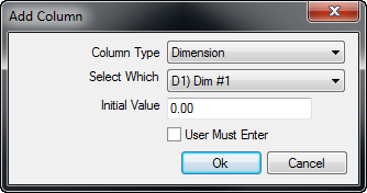 - To apply a dimension to drive the various sizes of the Sub-assemblies valve set, select the New Add Column
