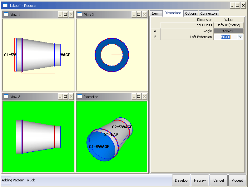 When using standard fittings within CAM-Duct it is possible to adjust all of the dimensions and options within the fitting. However, if a dimension, option, connector or a seam within the fitting is always the same it is possible to 'lock' the field to save time when inputting the part.
