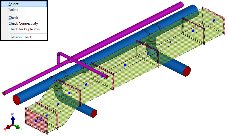 - To select all the items that are contained within a connected service system, right click on the appropriate service name : "HVAC : General Supply", a dialog will appear. Click on the "Select", all the items contained within the service will become highlighted.