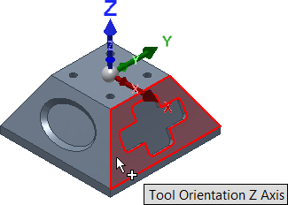 4. Make sure the Tool Orientation Z axis button is active and select the slanted face as shown in the following image: