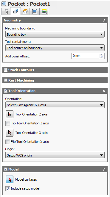 For surfaces that are not exactly horizontal, Inventor HSM Pro interpolates between the axial and radial (wall) stock to leave values, so the stock left in the axial direction on these surfaces might be different from the specified value depending on surface slope and the radial stock to leave value.