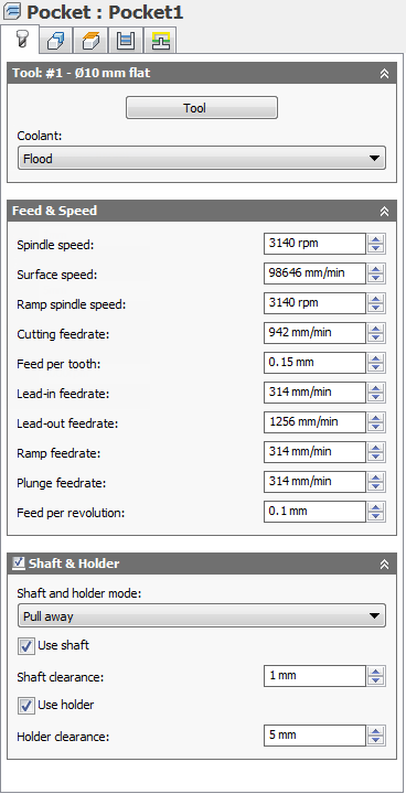 For surfaces that are not exactly vertical, Inventor HSM Pro interpolates between the axial (floor) and radial stock to leave values, so the stock left in the radial direction on these surfaces might be different from the specified value, depending on surface slope and the axial stock to leave value.