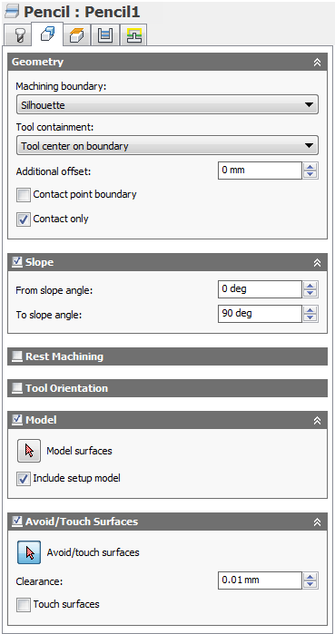 Only areas equal to or greater than the values in the From slope angle and To slope angle parameters are machined.