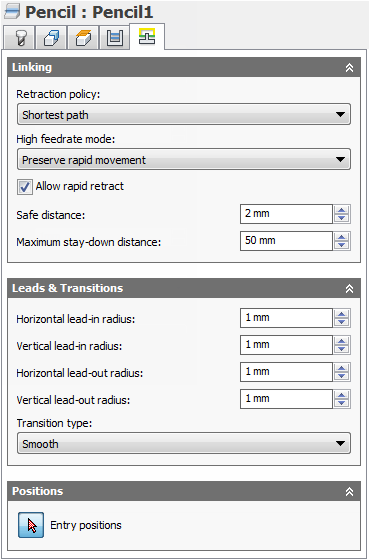 Smoothing works best when the tolerance (the accuracy with which the original linearized path is generated) is equal to or greater than the Smoothing (line arc fitting) tolerance.