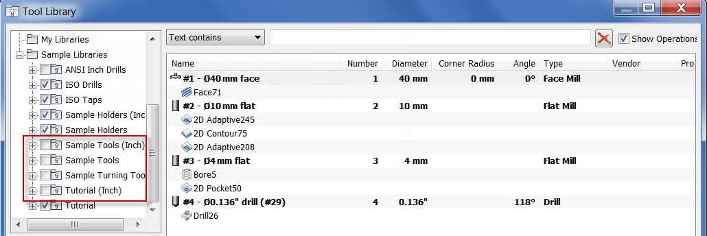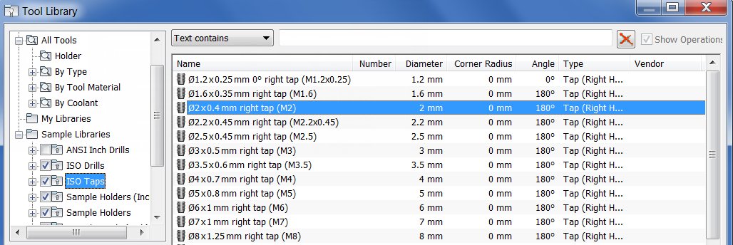 By selecting the All Tools search folder from the top of the Tool Library tree, all your tools from all libraries are presented in the tool list on the right side. If you choose any of the search folders below All Tools, the list is immediately updated to display only the tools matching the selected search folder.