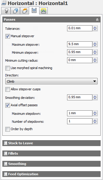 The maximum amount of smoothing applied to the roughing passes. Use this parameter to avoid sharp corners in the toolpath.