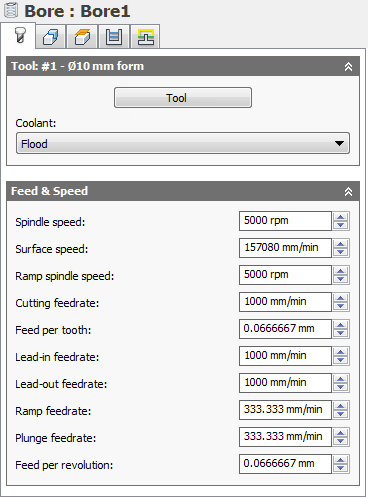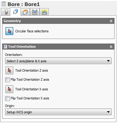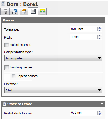 The Bore operation allows you to bore mill cylindrical pockets and islands by selecting the cylindrical geometry directly. The heights and depths are automatically derived from the selected geometry which allows you to machine varying geometry in a single operation.