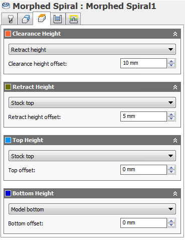 The Clearance height is the first height the tool rapids to on its way to the start of the tool path.