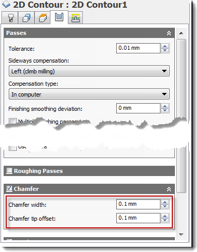To create the chamfer, simply create a 2D Contour operation and make sure that a ball/bull end mill tool is selected.