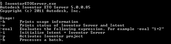InventorETOServer.exe delivers the core functionality of Inventor ETO Server. Its default location is C:\Program Files\Autodesk\Inventor ETO Server [version]\Bin. Double-click InventorETOServer.exe to open it.