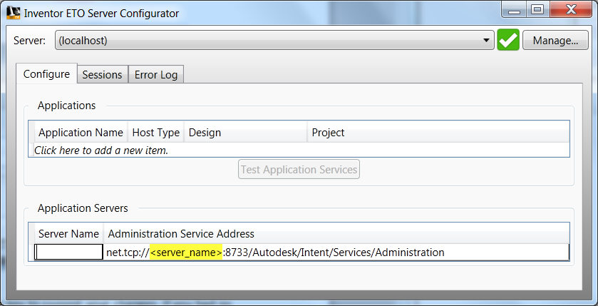 - Administration Service Address (required) The WCF endpoint address of the server. Replace the <server_name> portion of the default address with the name of the server. The default address here matches the installation default address used in the server installation.