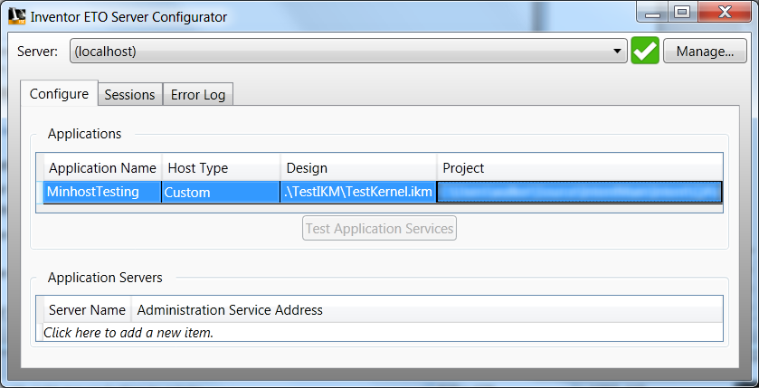 To test your connection to any application and confirm it is configured correctly, select the application to test and click Test Application Services. The test application uses the same interface that the remote application uses, so consumes a license key on the server while running.