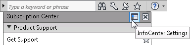InfoCenter is a set of tools on the right side of the title bar that provide access to product-related sources. Although InfoCenter is common across several Autodesk products, the selection of tools sometimes differs from product to product. For example, in some products, the InfoCenter toolbar includes a Sign In button for Autodesk 360 services, or a link to Autodesk Exchange.