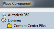 - In the Place Component dialog box, select Autodesk 360 from the top of the locations panel in the dialog box.