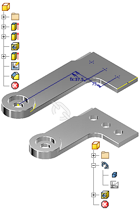 To restore a suppressed link, right-click the derived part, and then select Unsuppress Link With Base Component.