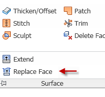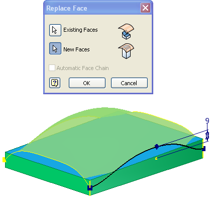 In this section, you use Replace Face to change the top of the object to match the shape of the new surface.