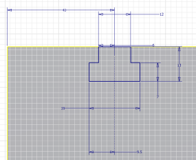 Adjust your view zoom to see the T Slot sketch and the left edge of the table. Note: Sketch illustrations in this tutorial show the grid displayed. If you recently completed either the Parts 1 or Parts 2 tutorials, you will have undisplayed the sketch grid by changing the Application Options. This tutorial does not require the use of the sketch grid and can be completed with the grid displayed or undisplayed.