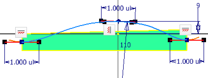 - Place a radial dimension of 110-mm on the middle fit point curvature handle. A radial dimension is not a unitless dimension.