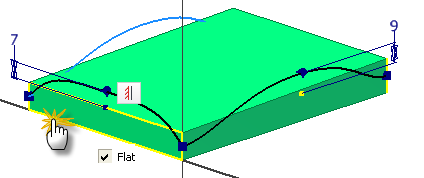Right-click the middle fit point and choose Flat from the context menu. The mid-section of the spline now has zero curvature. Although not required for this exercise, a unitless dimension can be applied to the handle to extend the length of the flat segment.