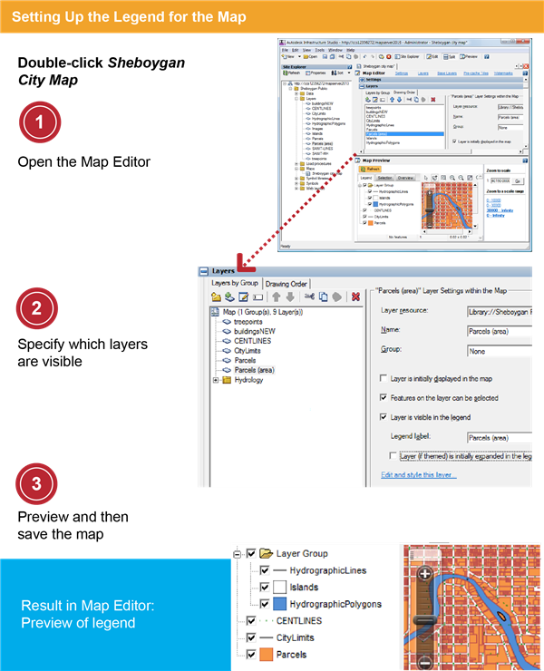 In this exercise, you specify how you want the legend to appear. Some layers are initially turned on while others are turned off. You will be able to view the legend in the Web browser in the next exercise.