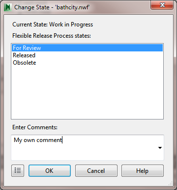 - In the Change State dialog box, click the lifecycle state you want to apply. States that are not permitted due to transition configurations are not displayed.