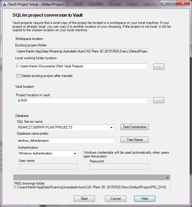 Vault projects use SQL Server for the plant database. If your project is using the default (SQLite) format it is converted to SQL Server during migration.