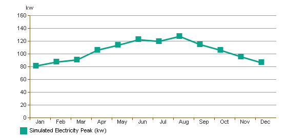 When reviewing an energy analysis in the Results and Compare dialog, this chart displays the project's estimated peak electricity demand by month.