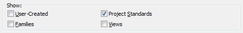 - In the Worksets dialog, select only Project Standards in the Show field.